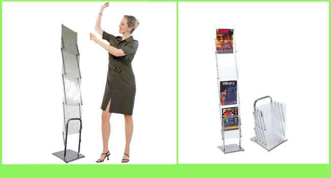 El folleto es ideal para exhibir la literatura corporativa, revistas y folletos en la oficina o en exposiciones y eventos corporativos.