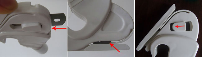 Deje un lado del seguro lateral boca abajo y se deslizara pronto, y despues ponga la navaja en la cabeza del cutter y asegurelo cuando la navaja se deslice en el fondo.