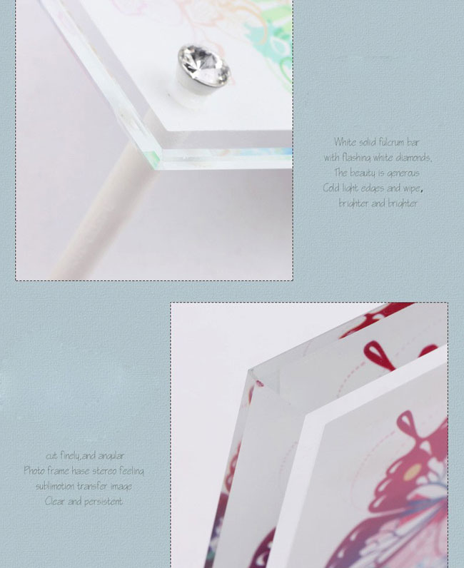 El cuadro de vidrio para sublimacion es bonito y llamativo, nueva era de cuatros para fotos. Con la evolucion continua de gustos de decoraciones, produce un cuadro unico y personalizado para las tendencias actuales de la moda, se esta haciendo muy popular. La imagen es clara y transparente, puede apreciar la imagen por los dos lados. La imagen no se deslava, Coloque el cuadro en su casa u ofincina para mostrar su gusto elegante. Es el perfecto producto de arte y souvenir.