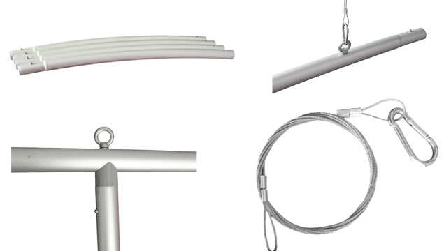 Our high quality hanging signs for trade shows are designed to be eye catching. Snap fit aluminum tubes that fit into one another, a crisp, fast assembly and top notch looks.
