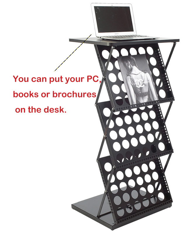 Stand con racks para libros,revistas. Stand tipo podium plegable.