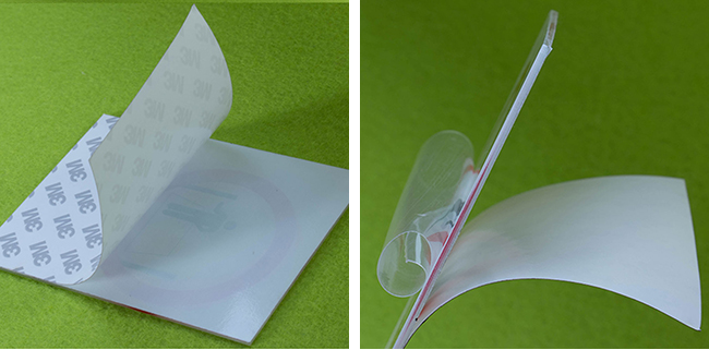 Hecho de acrilico. La parte trasera tiene adhesivo 3M, retire la pelicula y coloque donde desee.