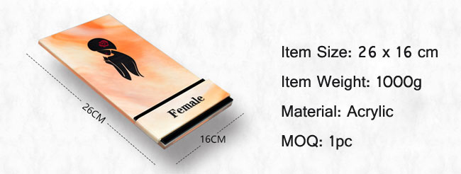 Hecho de acrilico. La parte trasera tiene adhesivo 3M, retire la pelicula y coloque donde desee.