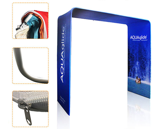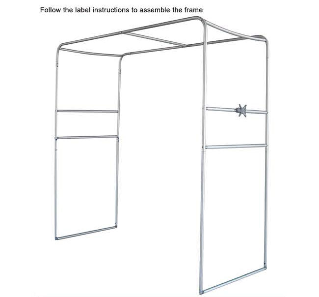 Square arch adds architecture and design to any event or interior space! Easily create and define a stunning entryway, focal point or stage set at your next trade show or event. Square arch combines pillowcase style stretch fabric graphics with 32mm curved aluminum tube frames. Square arch packs easily into one carrying bag