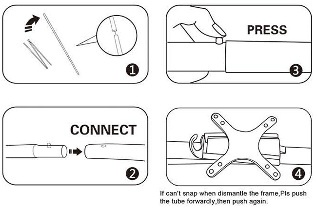 - State-of-the-art 32mm curved aluminum tube frame with expanding spigots
