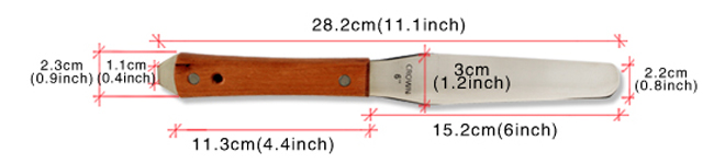 This stainless steel ink knife is produced by import good quality mirror steel with many different specification ,size for customer to choose . It is flexible and bright on knife surface and can open bottle lid with wooden handle.