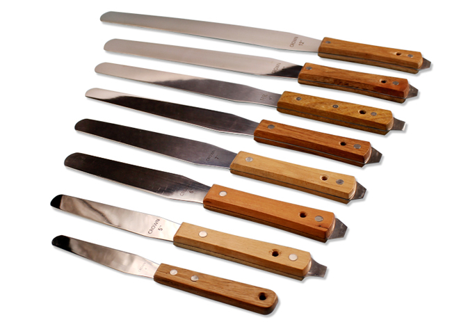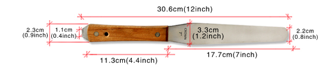 This stainless steel ink knife is produced by import good quality mirror steel with many different specification, size for customer to choose. It is flexible and bright on knife surface and can open bottle lid with wooden handle.