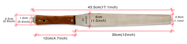 This stainless steel ink knife is produced by import good quality mirror steel with many different specification, size for customer to choose . It is flexible and bright on knife surface and can open bottle lid with wooden handle.