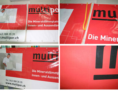 - After joining the pictures with the double-sided tape, one buttonhole shall be made at each end of the joined of images. For larger images, one buttonhole shall be made every meter to ensure the secure adhesion.