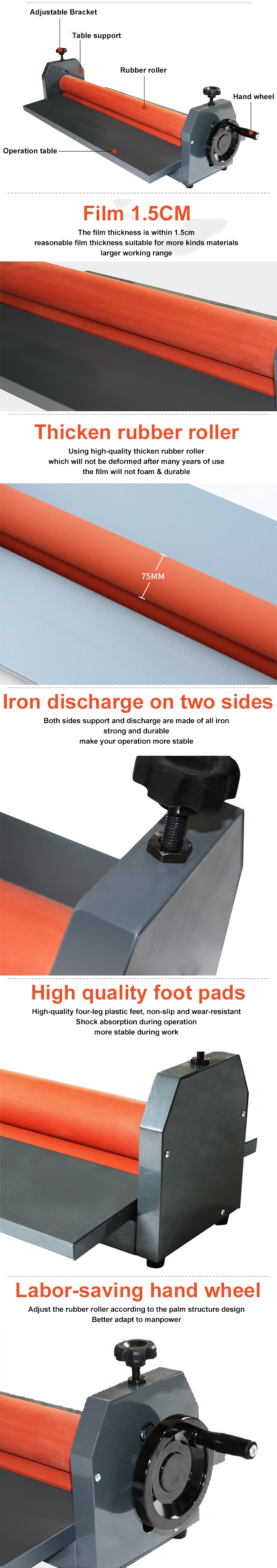 Application: Used for after printing action. Available for photographic, advertising and copy shops to do lamination work, adding protective layer on books covers, photography’s, color pages, documents, charts, drawings, indoor advertising products, etc.
