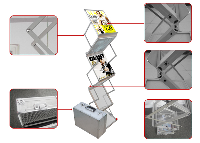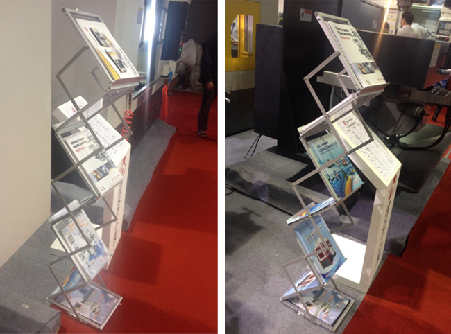 El folleto es ideal para exhibir la literatura corporativa, revistas y folletos en la oficina o en exposiciones y eventos corporativos.