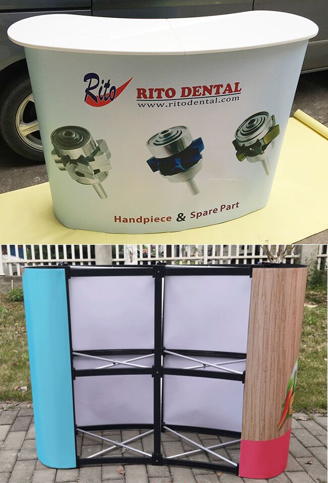 The aluminum folding promotional table can be used alone or in combination with other display equipment. The interior can store promotional items, and the advertising information of the promotional products can be released on the front, sides and top. Fold and fold into a sheet, which can be carried in the bag. The showcase is versatile, because of its unique stud folding device, easy to carry, simple and quick installation, making this product ideal for use, there are many models for you to choose.