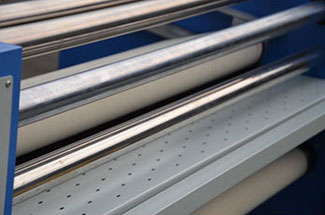 3. La alfombra y la banda son separados. Con ajuste de ejes simultaneos y balance de presion para asegurar una presion consistente en el rodillo, esto elimina el problema de tener que enfriar la alfombra al apagar el equipo ademas de extender el tiempo de vida de la misma.