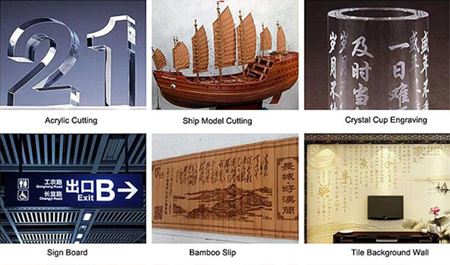 Non-metal materials such as acrylic, double color board, Plexiglas, Common glass, bamboo and wood, rubber, marble, granite and tiles, leather cloth etc.