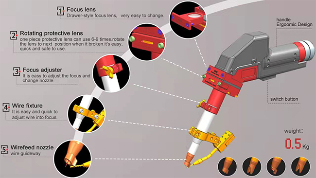 3) Original wire feeding fixture, flexible and convenient wire feeding switching, convenient focusing