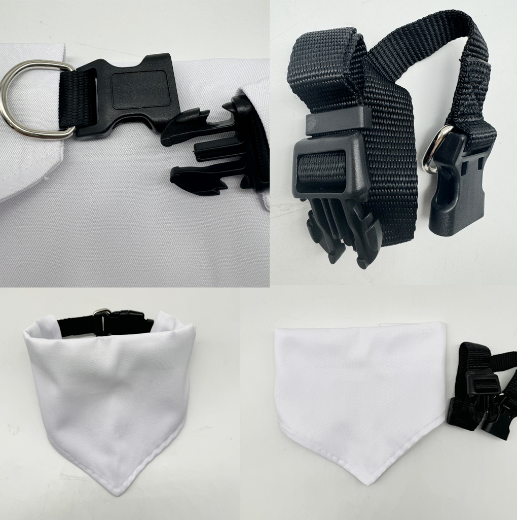 This sublimation pet scarf is popular due to safer wearing with buckle while keeping imprint easy with buckle detachable. It is flat in printing, and double-side printable.