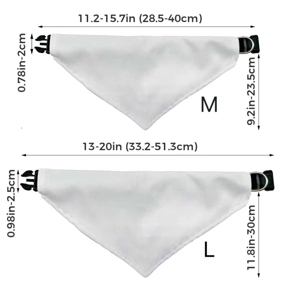 0 ( )Escriba un comentario para CALCA 15pcs Sublimation Blank Pet Bandana Pet Scarf Heat Transfer Washable Triangle Pet Accessorie for Dogs Puppy Cats with Adjustable Black Buckle M&L