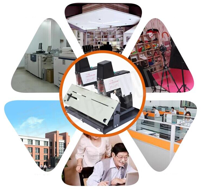 The electric flat stitch stapler has the overheating protection device, the stability is strong, may avoid to set the Angle or the card needle, the flat stitch stitching easily causes the document to be more even.