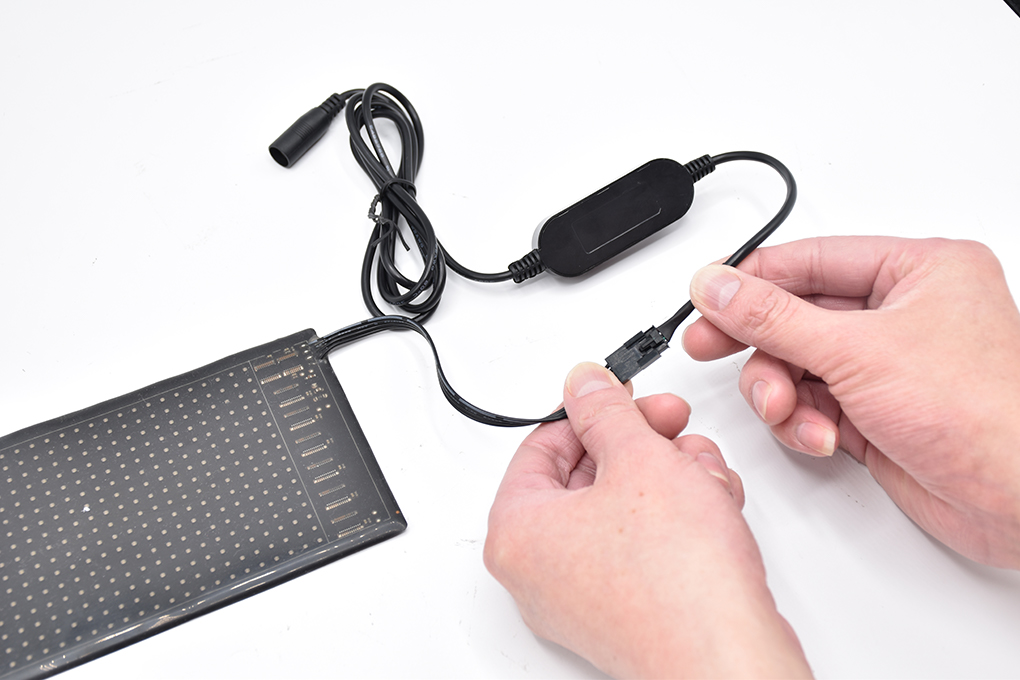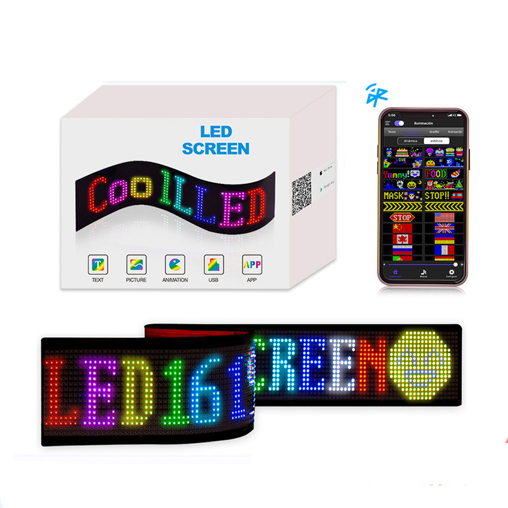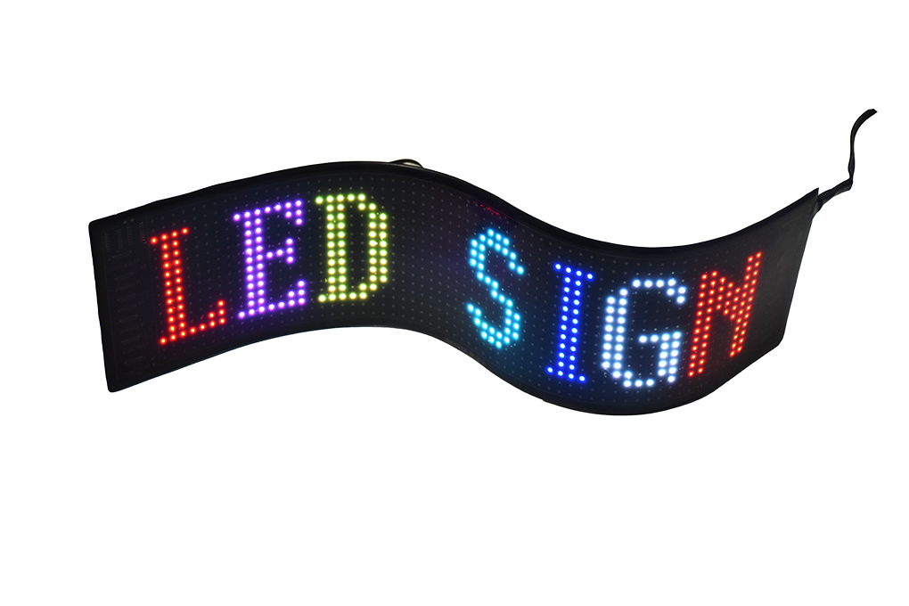 This product is a flexible display kit independently developed. It adopts FPC (flexible printed circuit board) material and is controlled by a smart phone app. The product is powered by a USB interface, making the traditional display screen light weight and in telligent, and turning it into a plug-and-play, easy-to-install kit. The product can be installed by pasting it anywhere and fits perfectly without leakage of light. It is ideal for use in car rear window glass, shop window glass, industrial park entrances, parking lot entrances, and other places.The product can change display content via the app, such as text, patterns, animations, etc. It not only has entertainment effects but also serves as a powerful advertising media for promotion.
